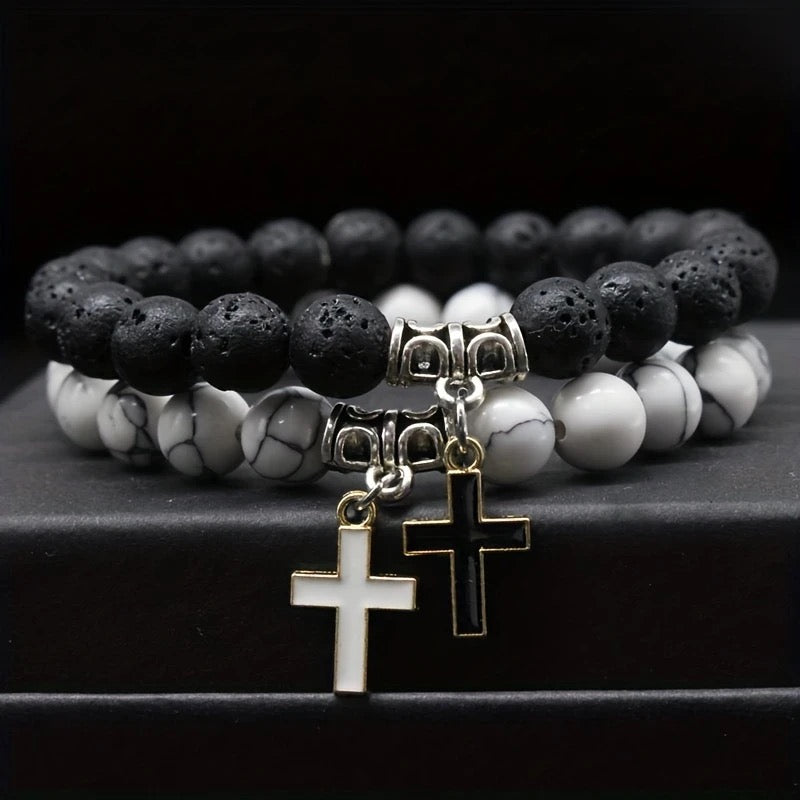 2-pack Bracelet with Cross Couple Bracelet Set