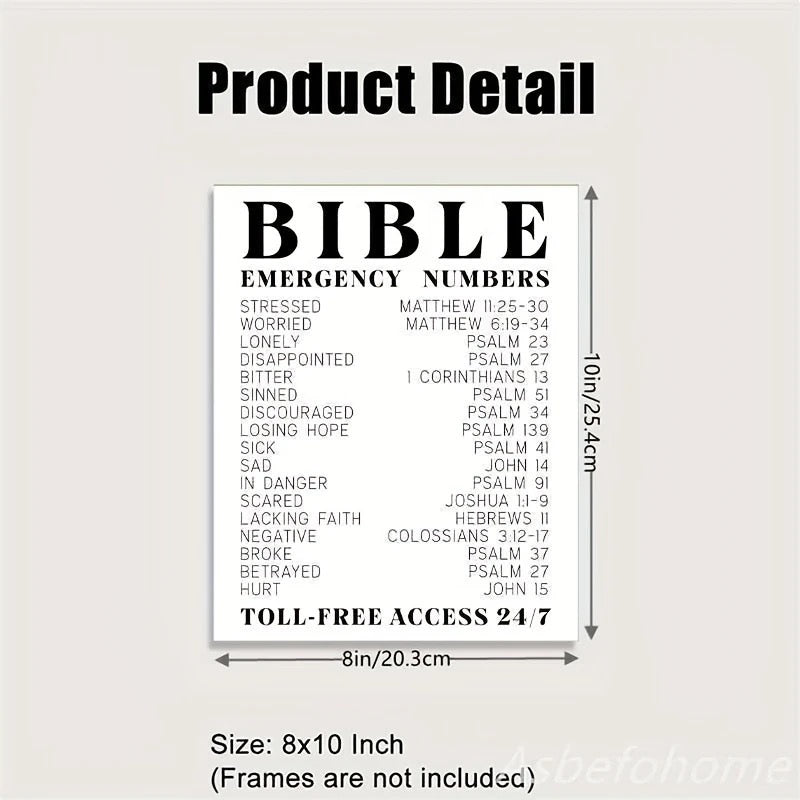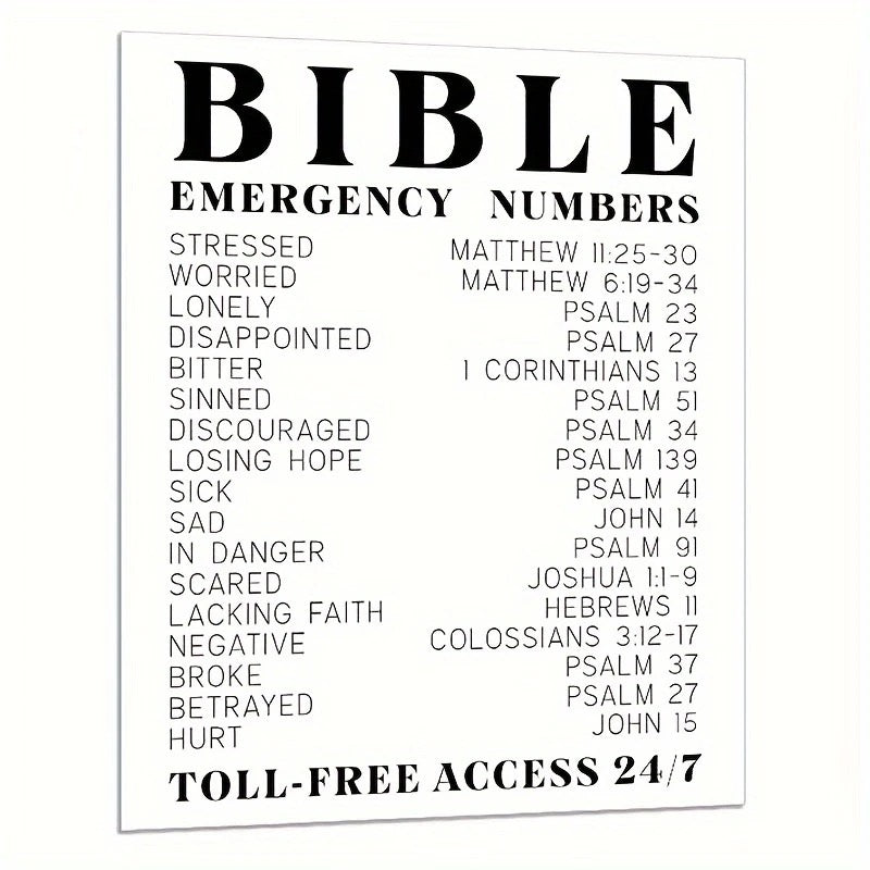 BIBLE EMERGENCY NUMBERS, Inspiring And A Perfect Poster To Help Any Emotion. 20X25 CM. (Frame Is Not Included)