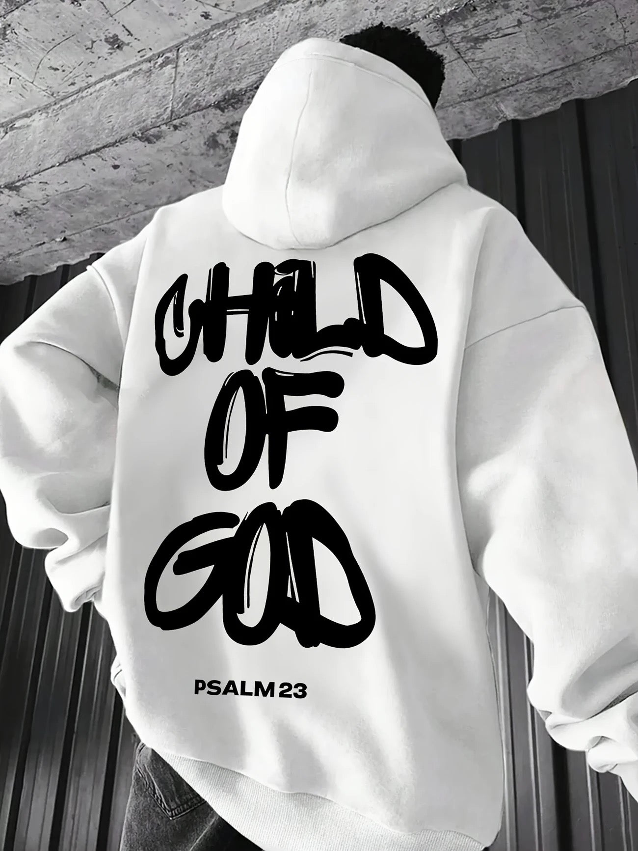 White Hoodie With:¨CHILD OF GOD, PSALM 23¨ Text. Suits Perfectly For Winter and Autumn Seasons.