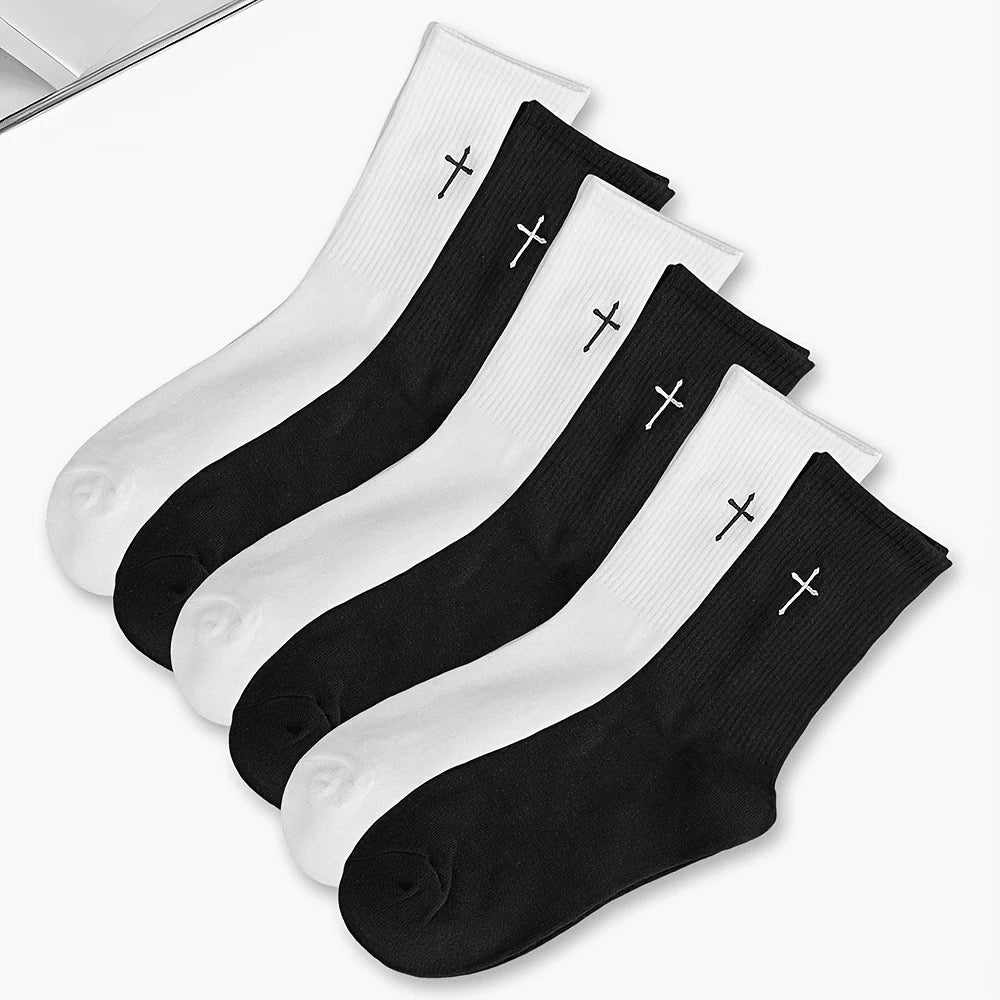 6 pack, 3 White pair & 3 Black Pair. With A Simple And Clean Design Of The Cross.